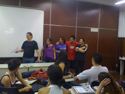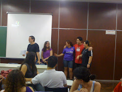 A mestra Carmen Gattás e a mestranda Carolina Boros, da ECA/USP, apresentaram aos alunos do Curso de Nutrição da USP, o trabalho do educomunicador.